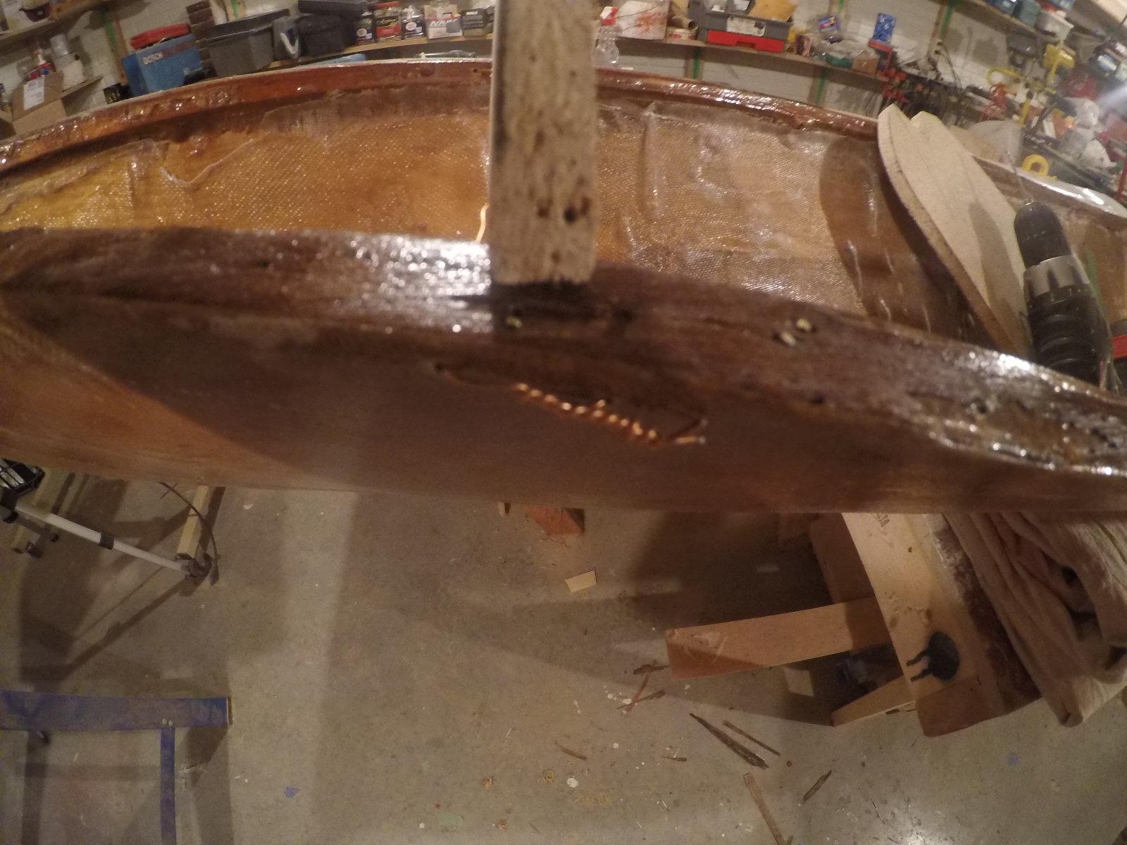 As you can see from the picture I used the copper wire technique- a tried and proven way to hold the forms in place. I used 18 gauge I bought at Michael ‘s. It didn’t have as much strength as regular copper wired but it was cheap. I did have to drill through the hull but all that will covered by epoxy and paint.